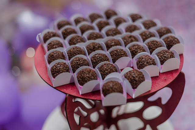 Continuando com as informações, pode-se dizer que a festa da Chloe estava divinamente bem. O cenário bastante contornado nos mínimos detalhes, predominando uma sensação de uma paisagem encantada, com base no destaque do lilás, juntando-se a outras cores e que resultou no caráter de um reino original.